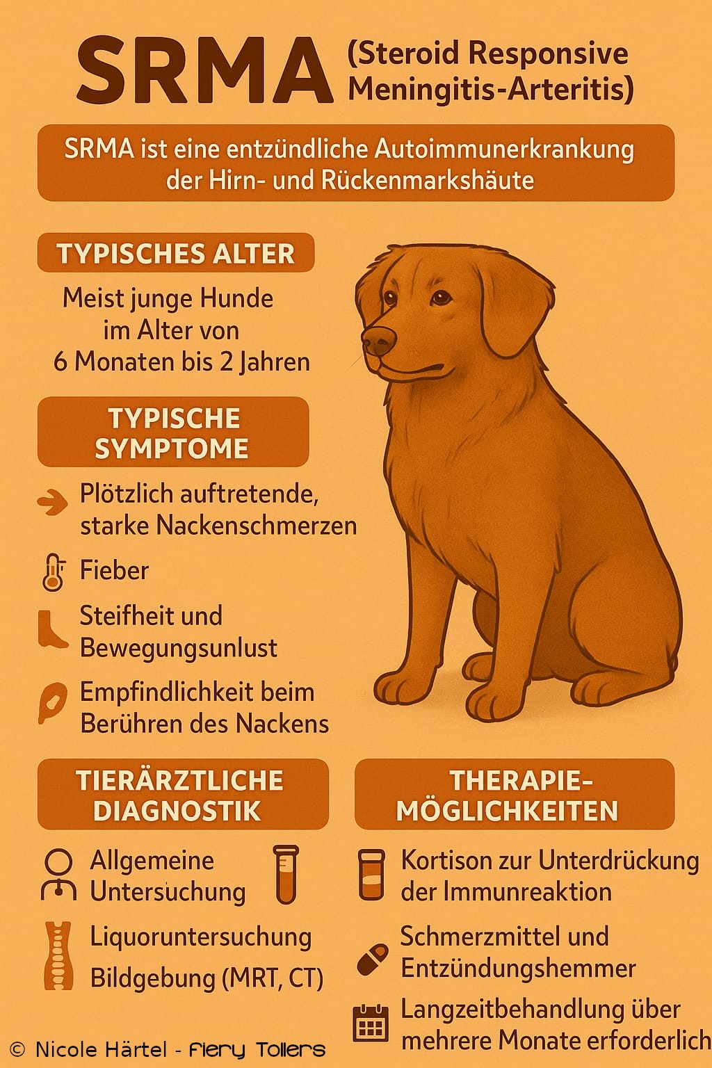 Die wohl häufigste Autoimmunkrankheit, die den Toller betrifft ist SRMA (steroid responsive meningitis / atheriitis).