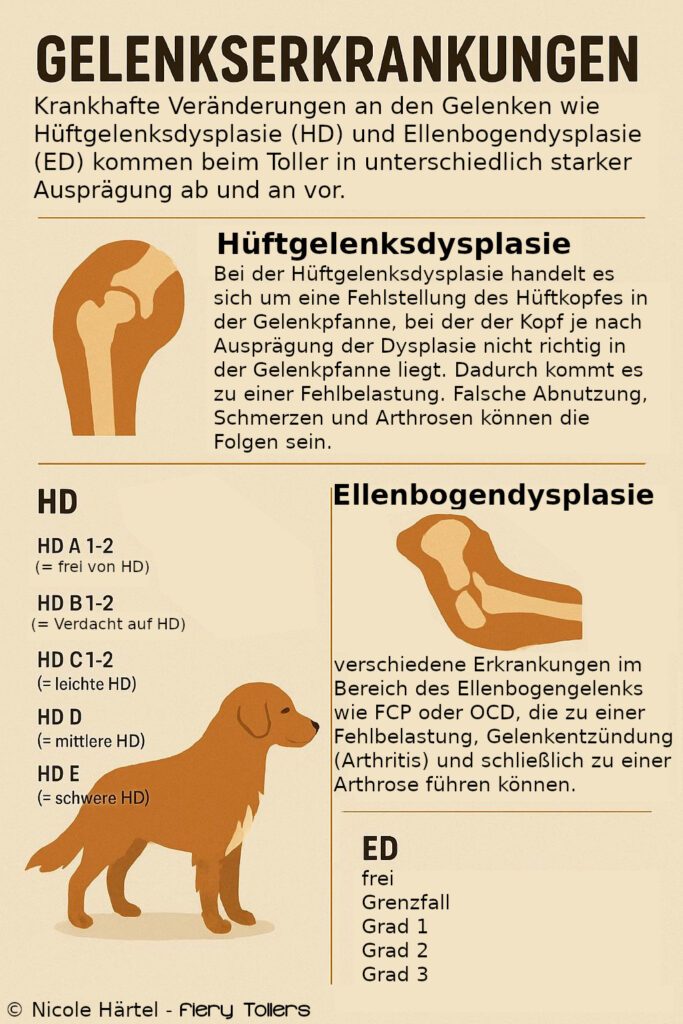 In Deutschland sind nur Toller mit HD A, B oder C1 und ED „frei“, „Grenzfall“, „Grad 1“ zur Zucht zugelassen, wobei für die Zucht mit HD C1 und ED „Grad 1“ besondere Auflagen gelten.